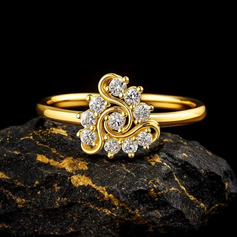 925 Sterling Silver 14K Gold Plated Minimalist Swirl Design Ring CZ Bezel Setting Cluster Statement Band Fine Jewelry Birthday