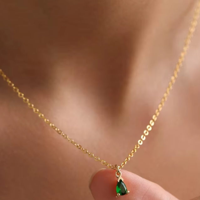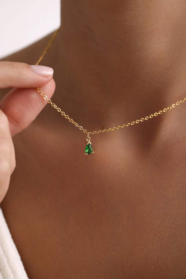 925 Sterling Silver 14K Gold Plated Tiny Drop Birthstone Necklace Mini Birthmonth Emerald Necklace Gift