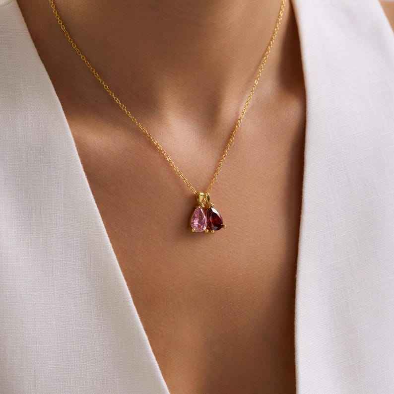 925 Sterling Silver 14K Gold Plated Large Drop Birthstone Ruby Pendant Necklace Personalized Jewelry Gift