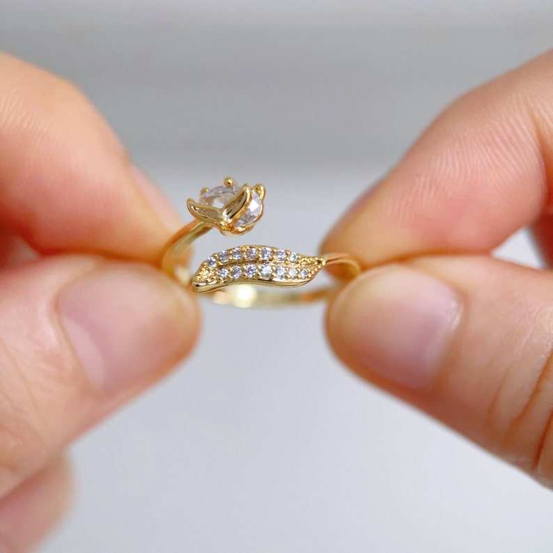 925 Sterling Silver 14K Gold Vermeil Cubic Zirconia Studded Fox Ring Adjustable Band Minimalist Christian Birthday Gifts Animal