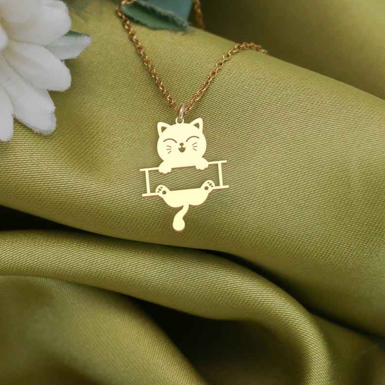 925 Sterling Silver 14k Gold Plated Minimalist Hanging Cat Charm Pendant Animal Lover Fine Chains Women Necklace Manufacaters