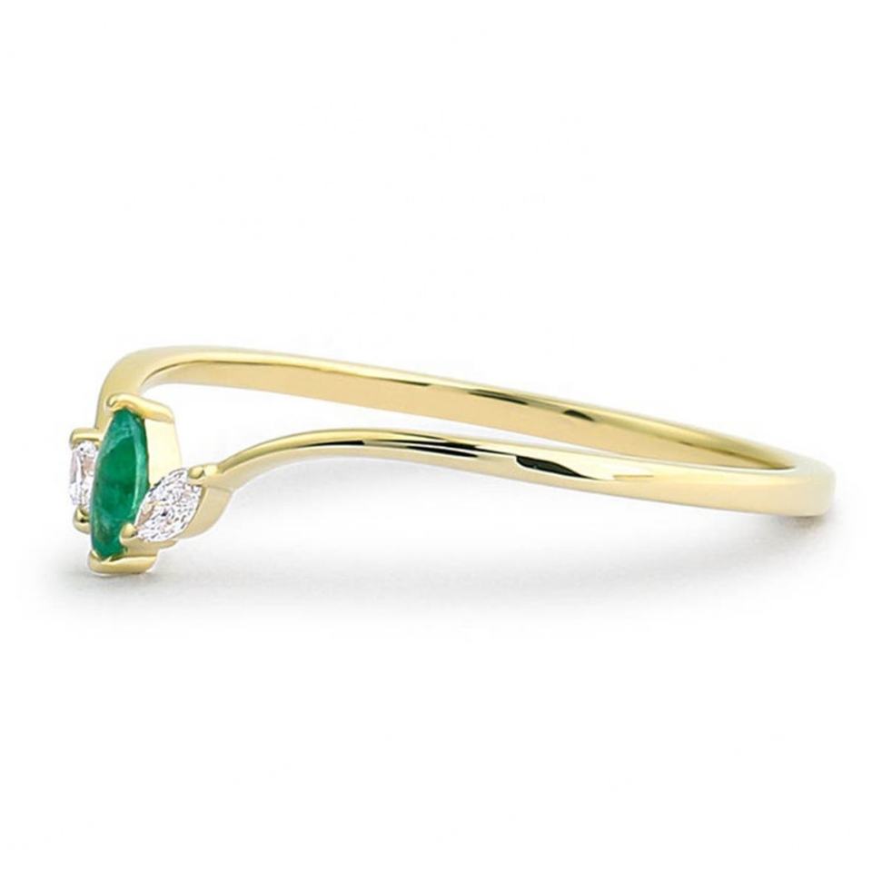 925 Sterling Silver 14k Yellow Gold Plating Marquise Marquise Emerald Ring