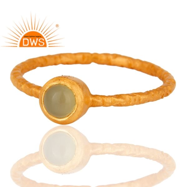 925 Sterling Silver 18k gold plated Natural Prehnite Chalcedony Gemstone Stackable Ring For Women Jewelry Manufacturer