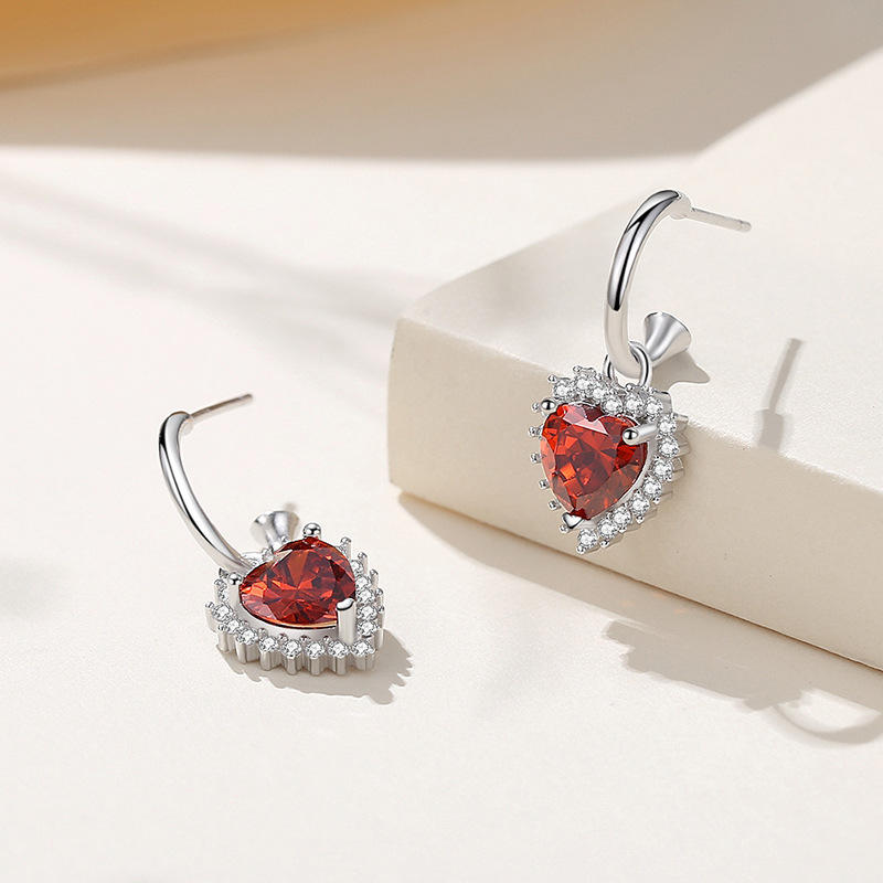 925 Sterling Silver 2025 Korea-Inspired 3D Embossed Ruby Heart Stud Earrings Hypoallergenic Minimalist Jewelry for Trendsetters