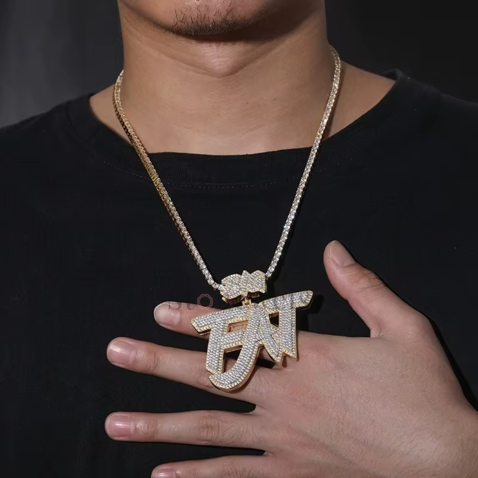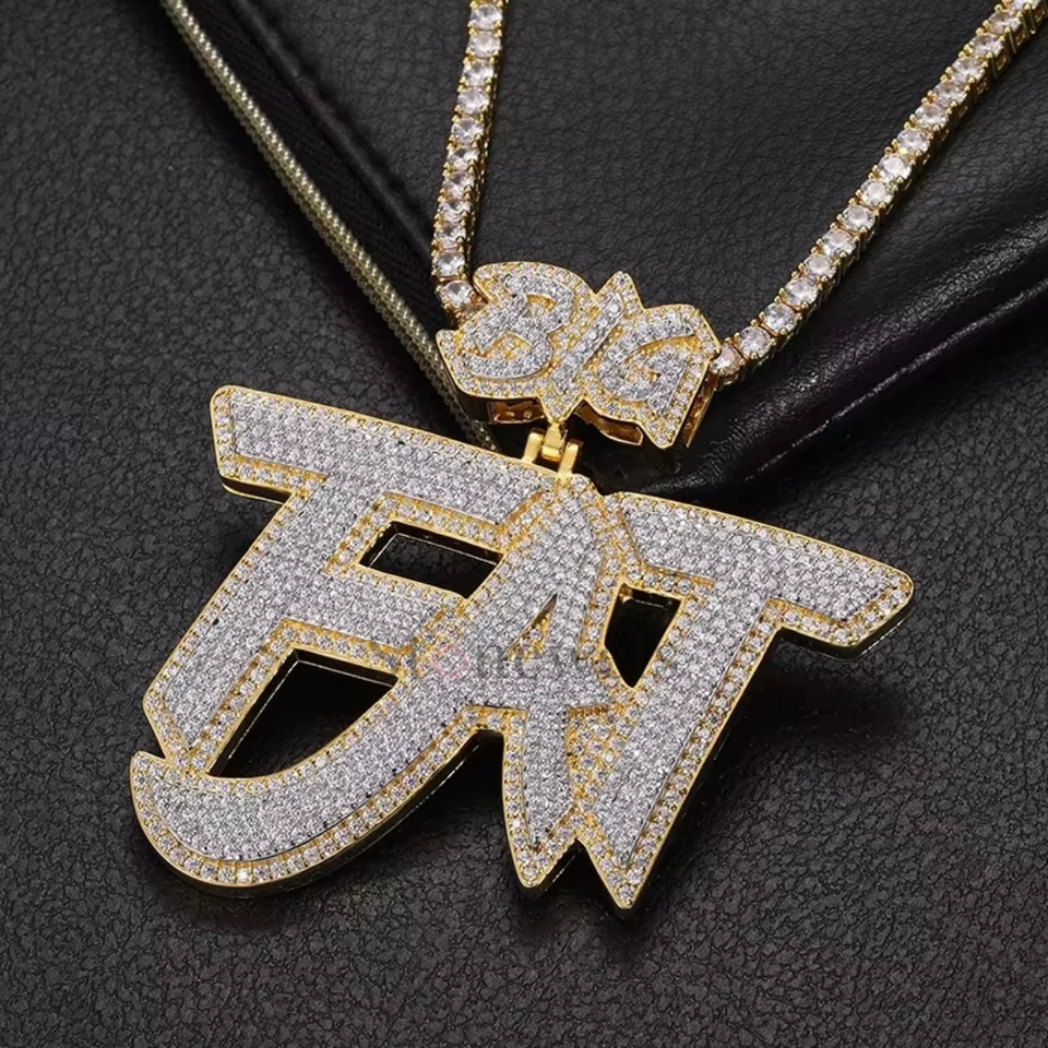 925 Sterling Silver 24k Gold Plated Big Fat Name VVS Natural Moissanite GIA Certified Cross Shape Religious Pendants Charms