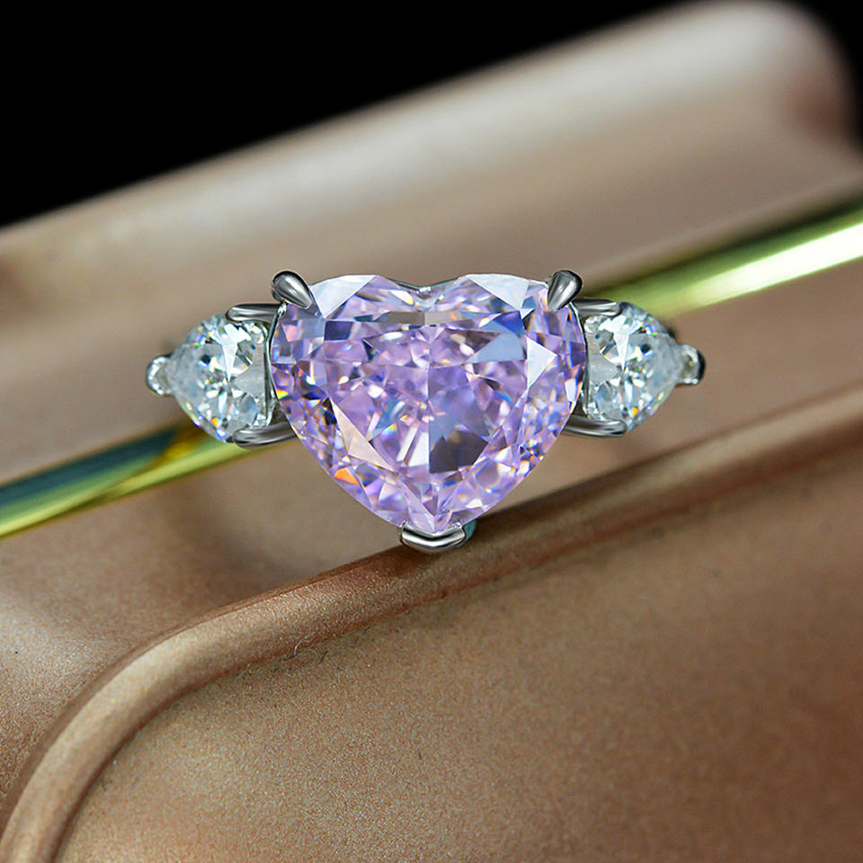 925 Sterling Silver 3-Stone Wedding Engagement Rings Cubic Zirconia CZ Heart Promise Ring for Women