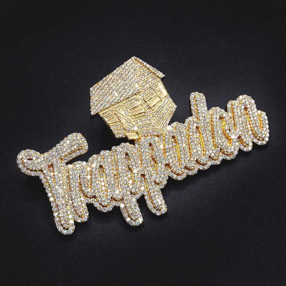 925 Sterling Silver 3Ct Round Cut Real Moissanite Silver/Rhodium Plated Customize Name Trendy Charm Pendant