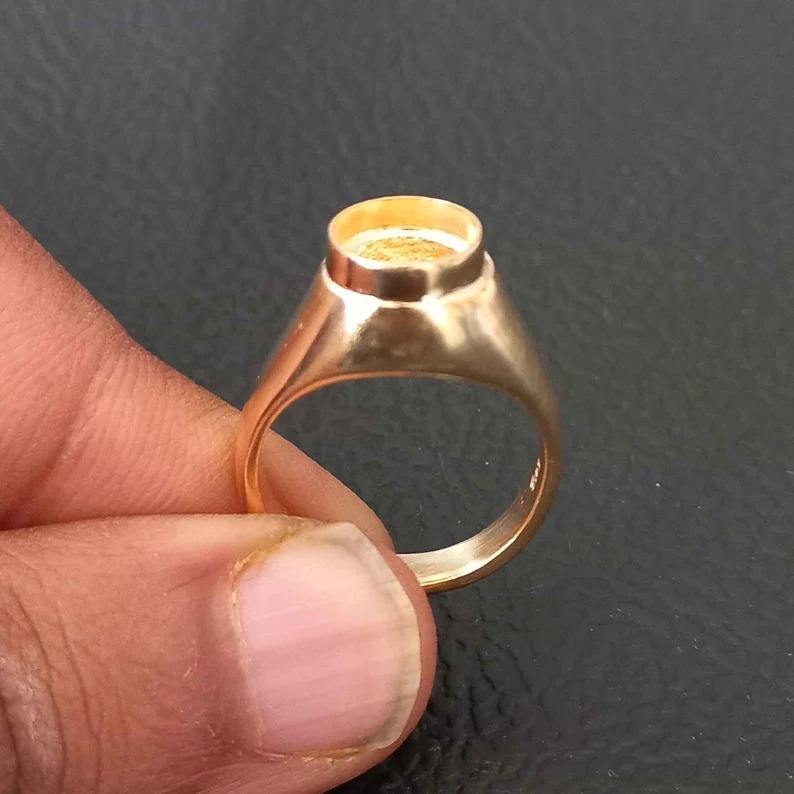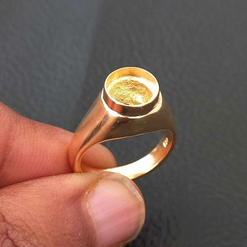 925 Sterling Silver 8mm Collet Ring Bezel 14K Gold Plated Men's Jewelry Finding Component DIY Jewelry Making Supplies