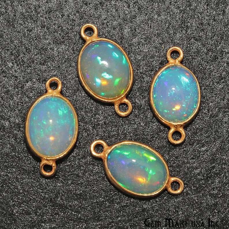 925 Sterling Silver 8x10mm Natural Ethiopian Opal Cabochon Oval bezel Setting Fine Gold Vermeil Charm Connectors Making Necklace