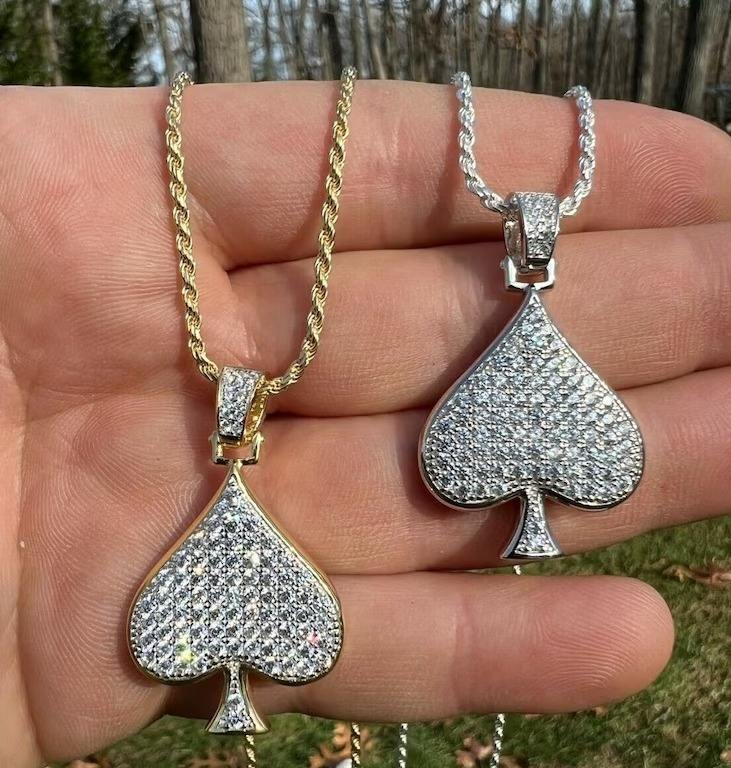 925 Sterling Silver Ace of Spades Hip Hop Lucky Pendant Ideal for Jewelry Other Diamond Necklace