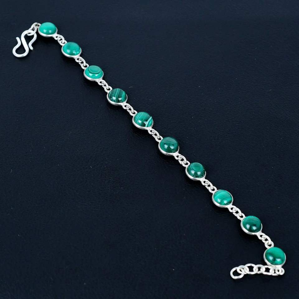 925 Sterling Silver Adjustable Bracelet with Malachite Gemstone Classic Link Fine Chain for Party or Anniversary Gifts