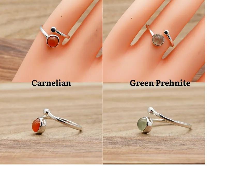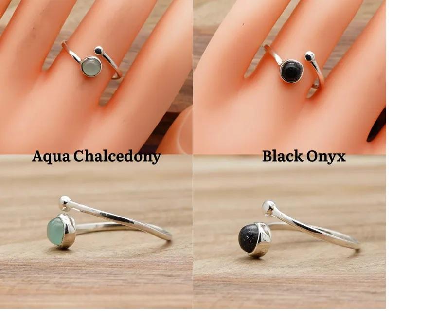 925 Sterling Silver Adjustable Gemstone Open Band Ring Minimalist Spiral Handmade Ring Jewelry