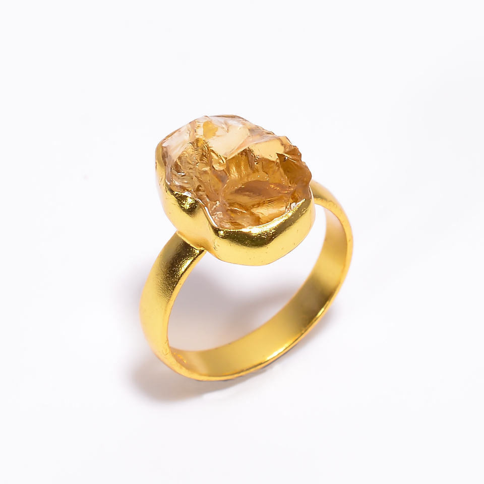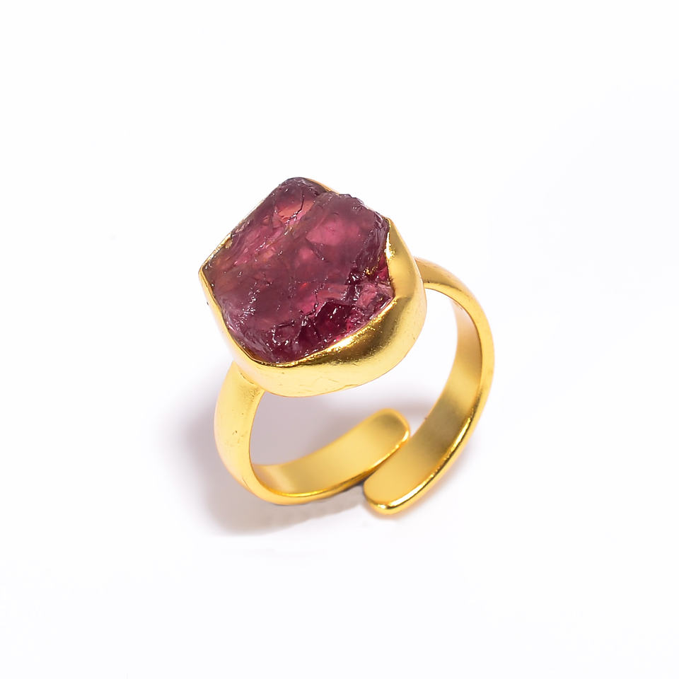 925 Sterling Silver Adjustable Ring Gold Plated Natural Raw Amethyst Gemstone Bezel Setting Fine Jewelry for Parties Setting