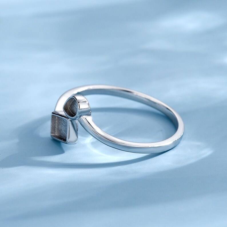925 Sterling Silver Adjustable Ring Setting 8x6mm Pear & 10x8mm Rectangle Blank Bezel Resin Ashes Work Keepsake Charm Jewelry