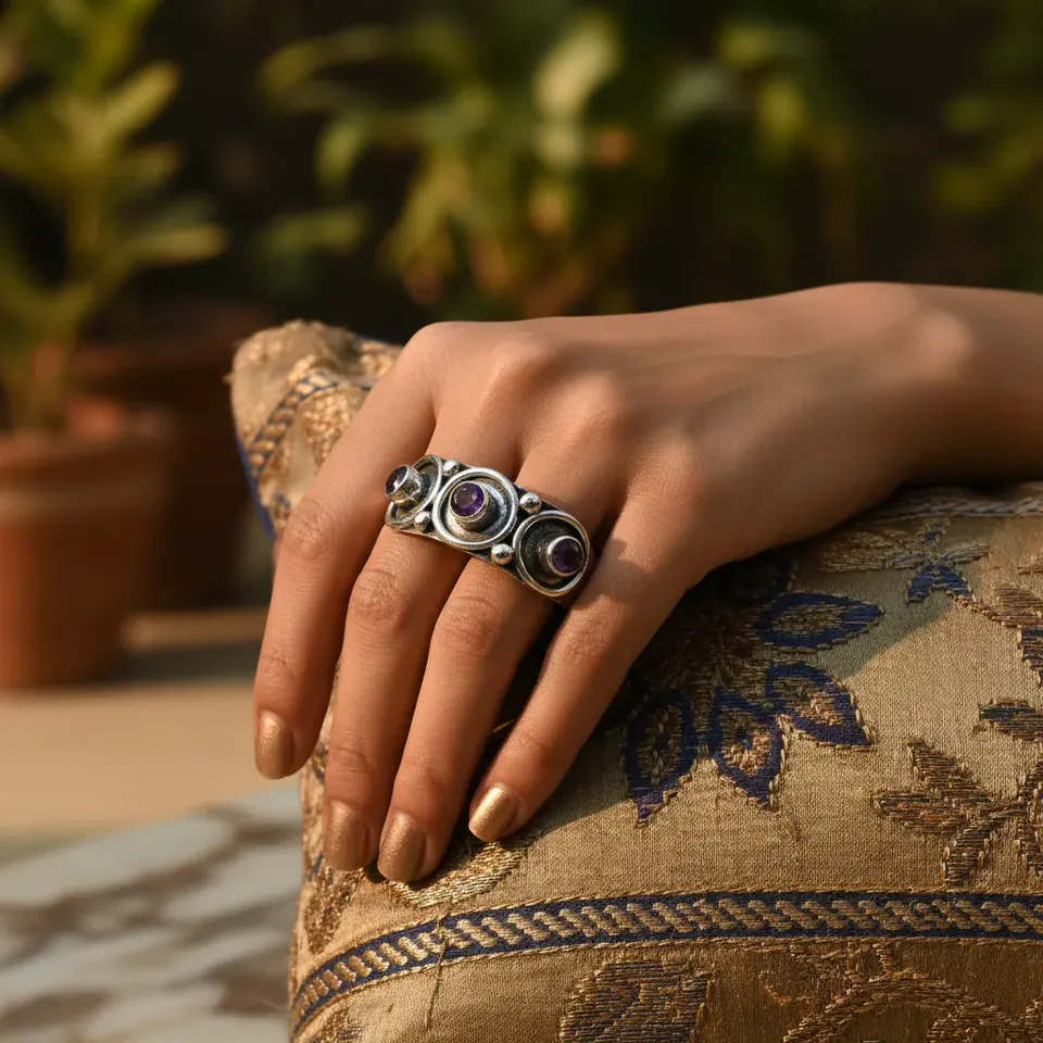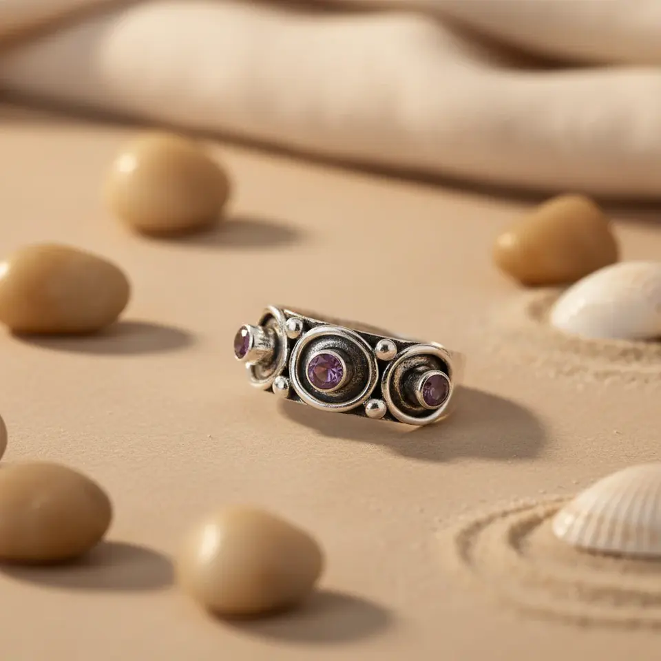 925 Sterling Silver Amethyst Ring for Women Fine Gemstone Jewelry Set
