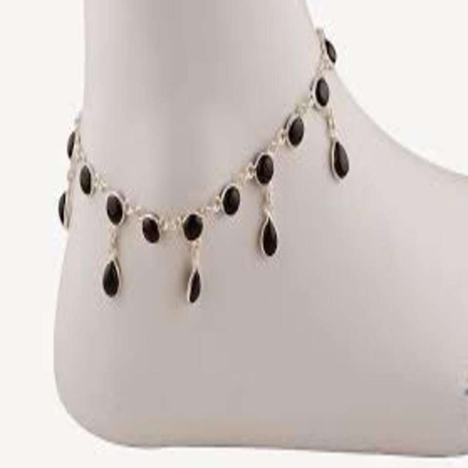 925 Sterling Silver Anklet Featuring Oval and Teardrop-shaped Black Gemstones Jewellery for Women and Girls Wear in Wedding's