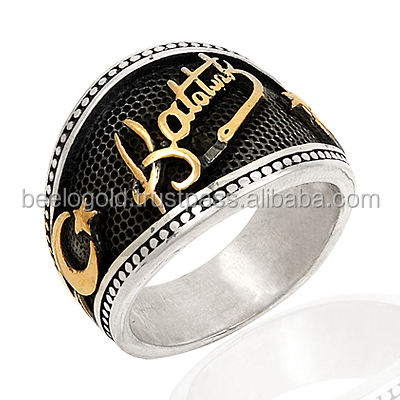 925 Sterling Silver Art Ataturk Moonstar Men Ring Original Hot Selling Rings Antique Pattern Silver Color Man Vintage Jewelry