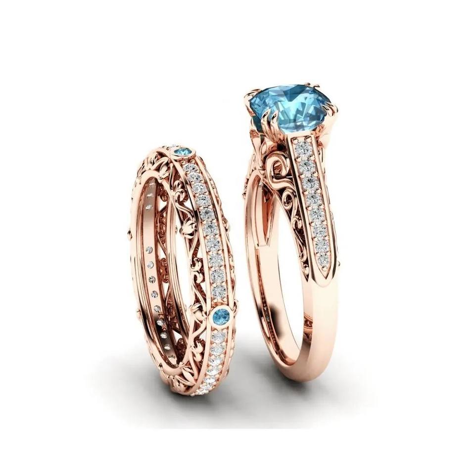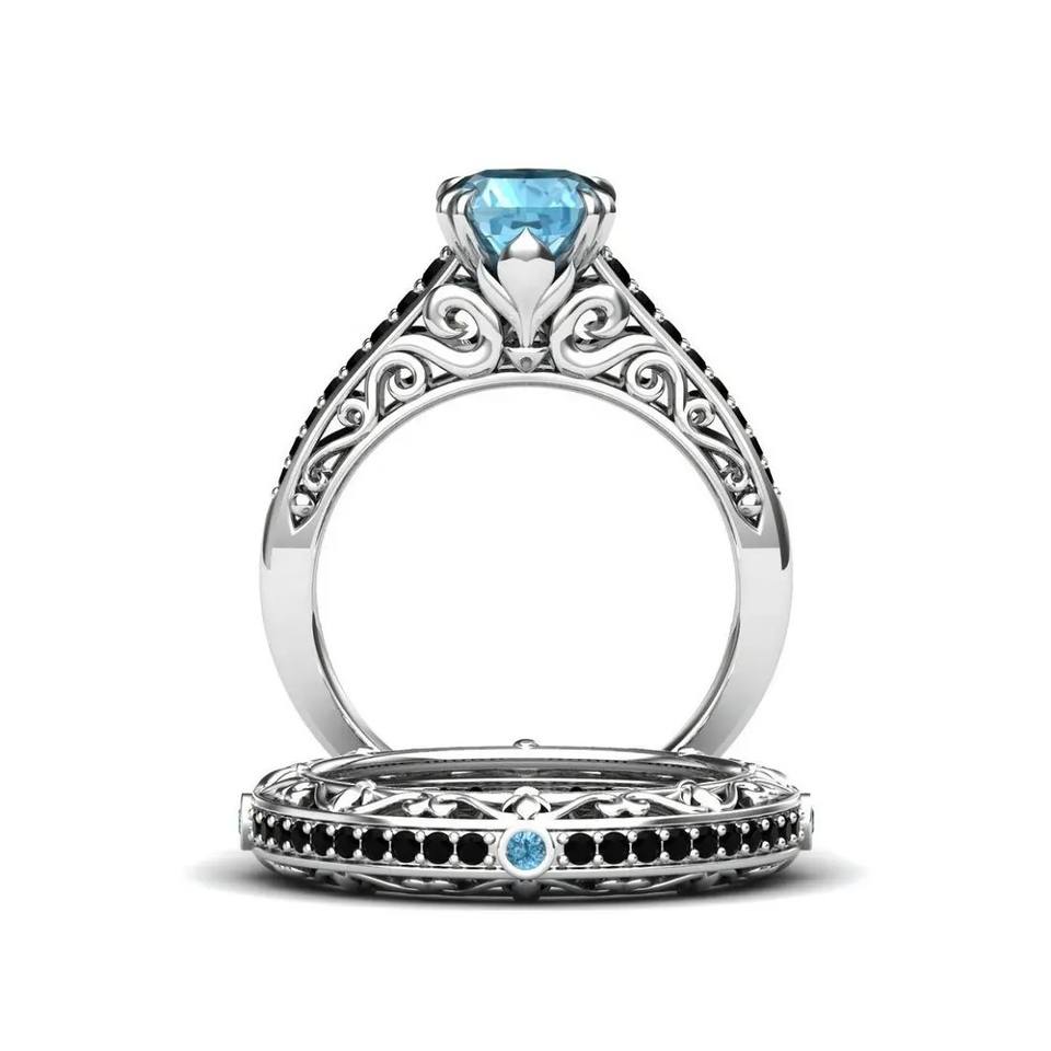 Product Name:925 Sterling Silver Attractive Blue Topaz Engagement Ring Jewelry Set