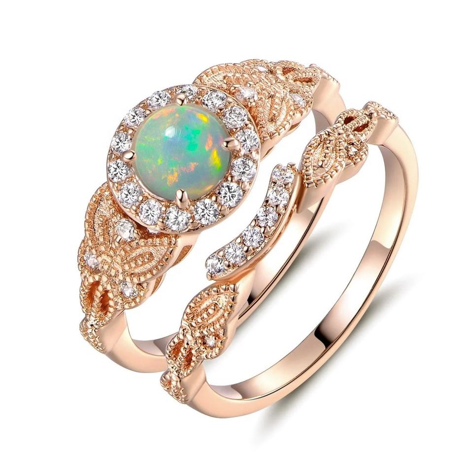 925 Sterling Silver Attractive Ethiopian Opal Milgrain Ring Set Semi Precious Stone Jewelry At Wholesale Factory Price