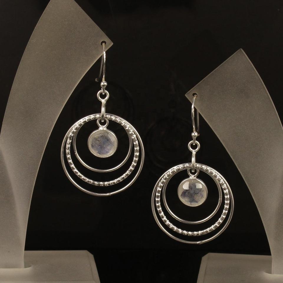 925 Sterling Silver Attractive Rainbow Moonstone Round Gemstone Chandelier Earrings Semi Precious Gemstone Jewelry Wholesale
