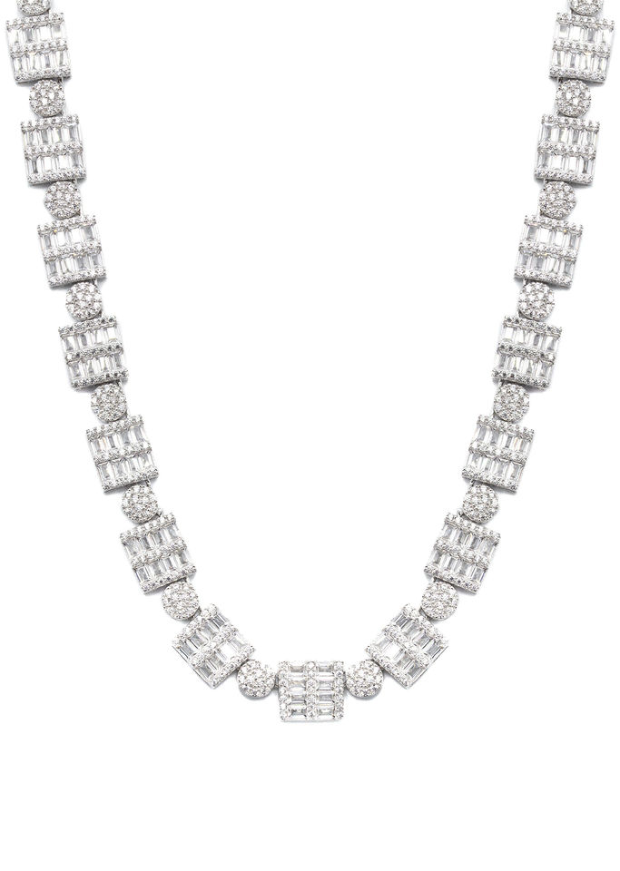 925 Sterling Silver Baguette and Round Iced Out Moissanite Cuban Chain for Luxury Fine Jewelry Collection