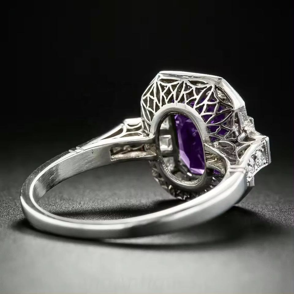 925 Sterling Silver Beautiful Natural Emerald Cut Amethyst Gemstone Fancy Ring New Design Solid Gold Elegant Jewelry Wholesale