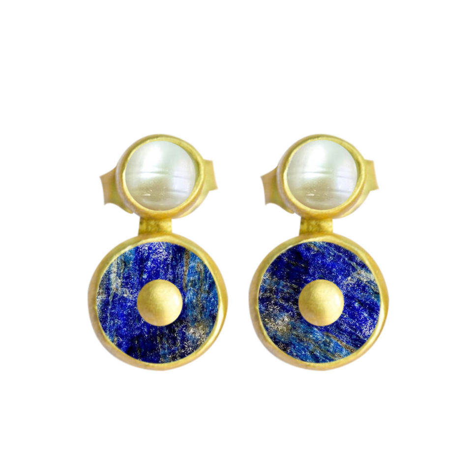 925 Sterling Silver Bezel Dangle and Drop Earrings Wholesale for Women Featuring Rough Lapis Lazuli Gemstone and Round Pearl