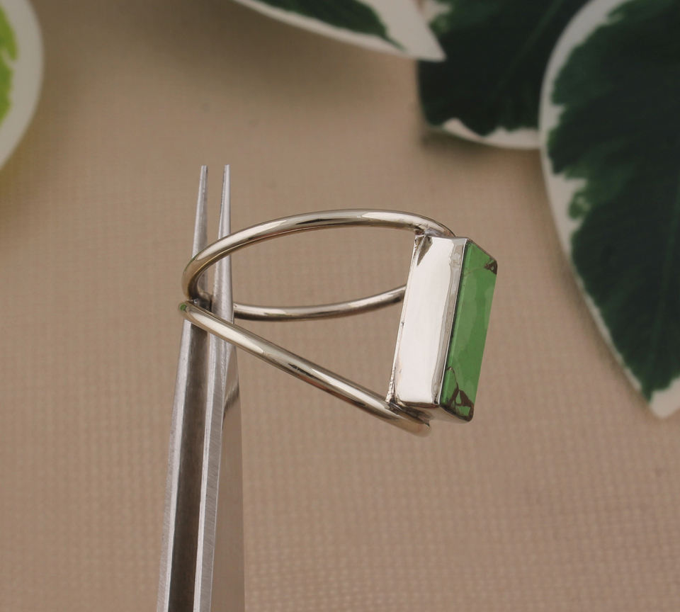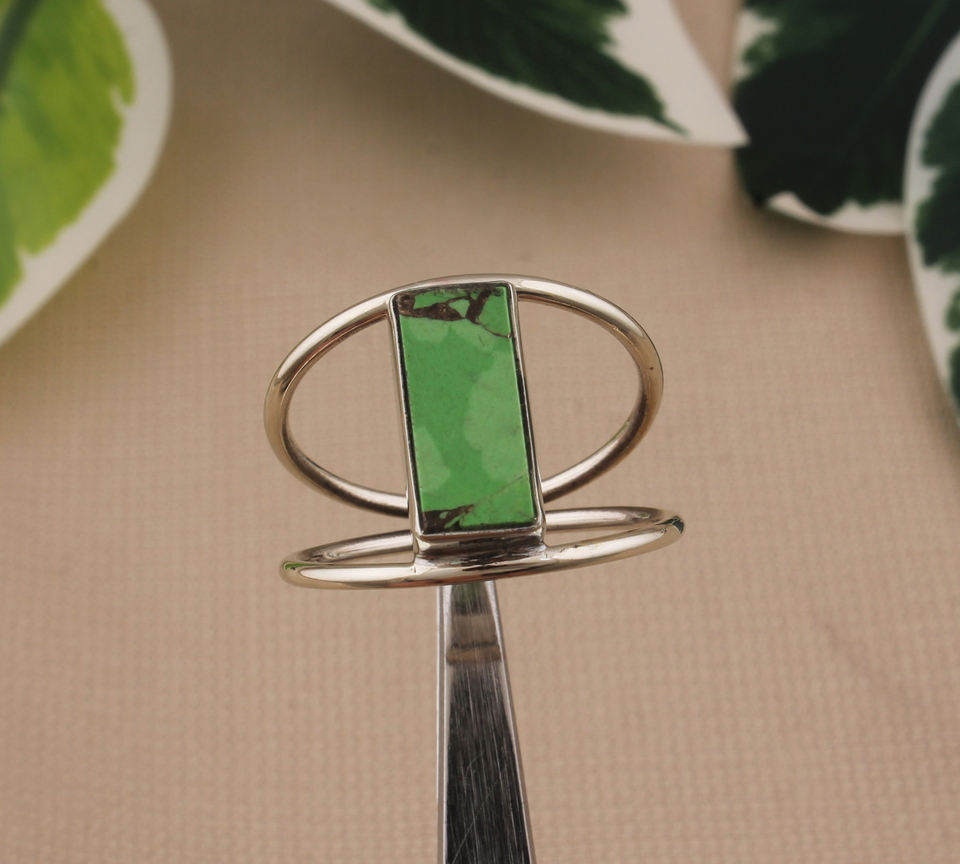 925 Sterling Silver Bezel Setting Green Copper Turquoise Cut Handmade Classic Boho Dainty Solitaire Ring Certified Wedding Party