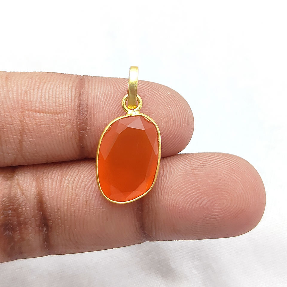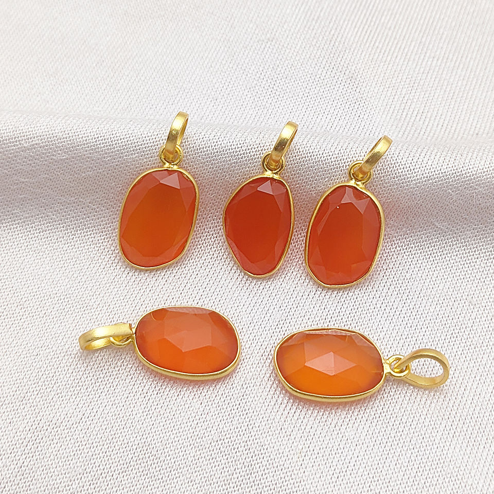 925 Sterling Silver Birthstone Pendant Carnelian Gemstone Bezel Charm with Uneven Fancy Bezel Wholesale Jewelry for Christians