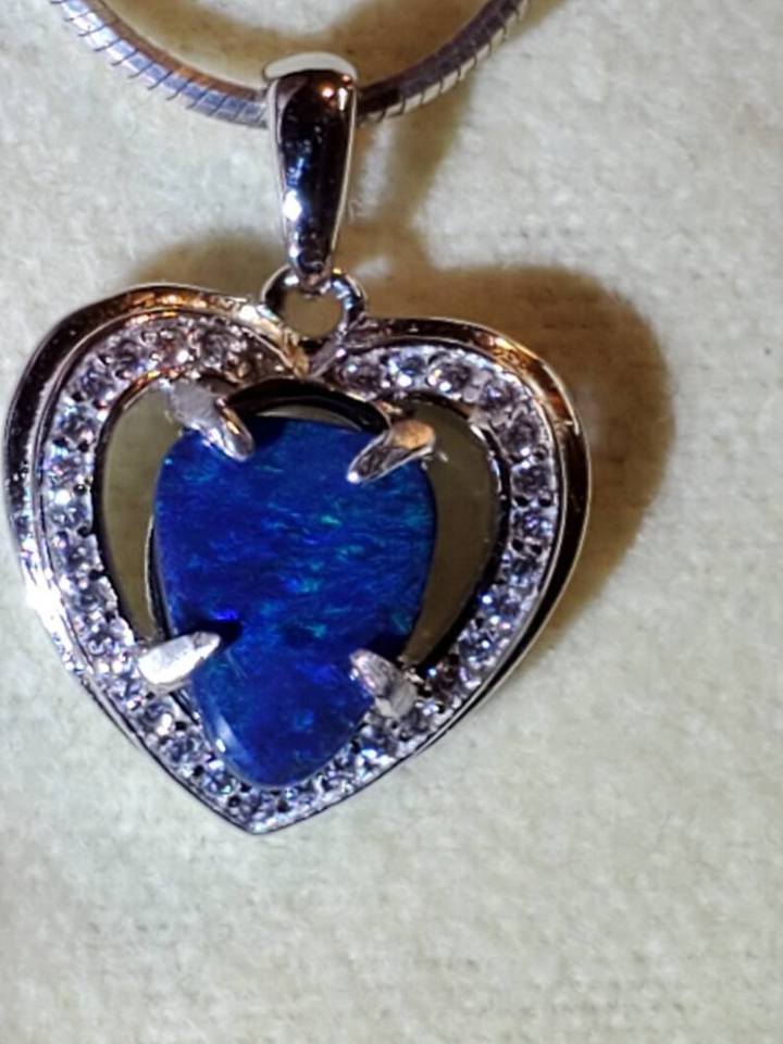 925 Sterling Silver Black Opal Heart Necklace Australian Lightning Ridge Blue Black High Quality Nickel-Free Jewelry Gift Party