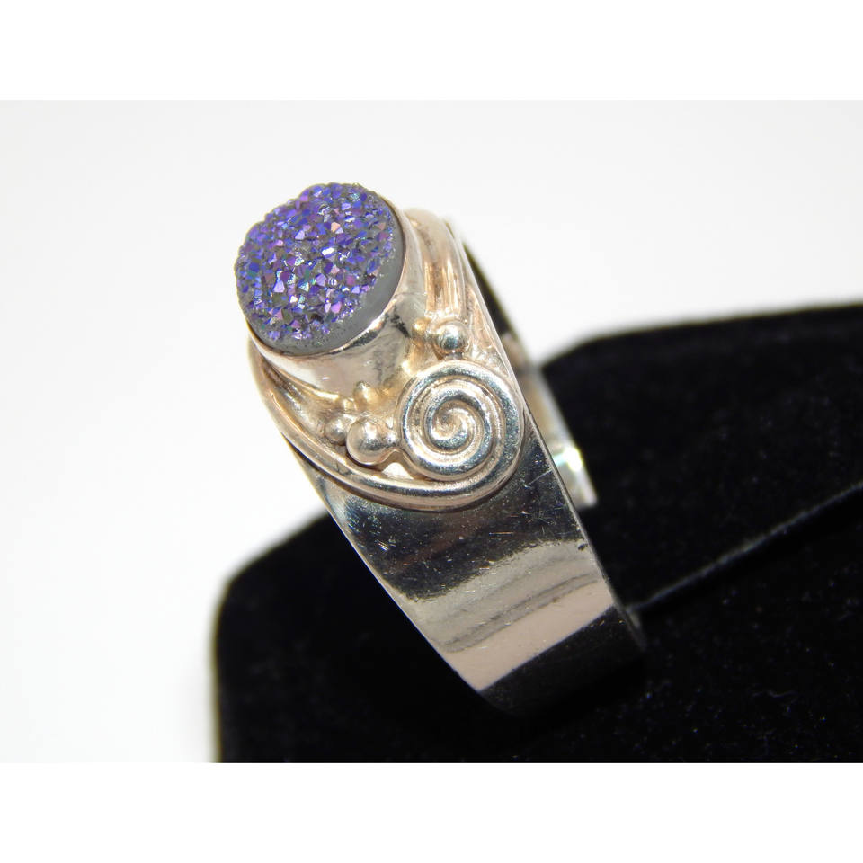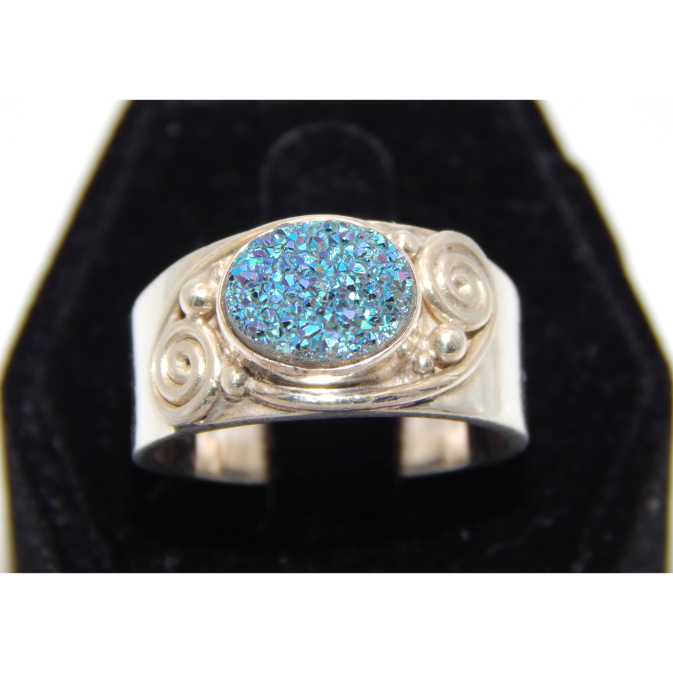 .925 Sterling Silver & Blue Druzy Quartz Ring by Sajen