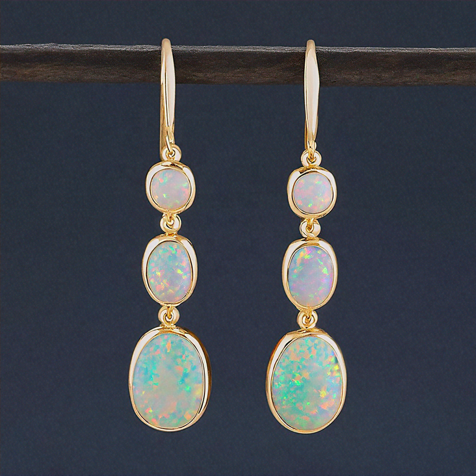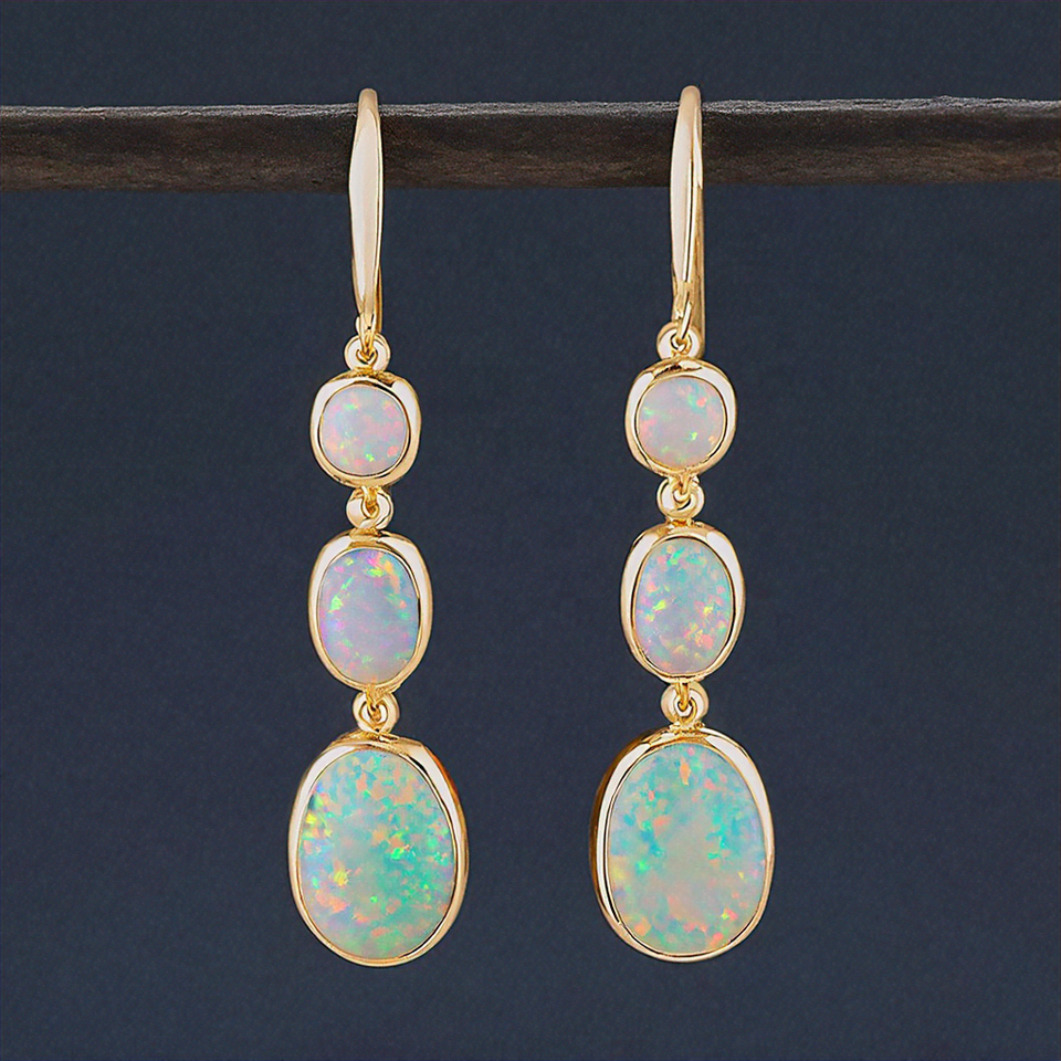 925 Sterling Silver Blue Opal Drop Earrings Natural Gemstone Pave Rhodium Plated Fine Jewelry for Women