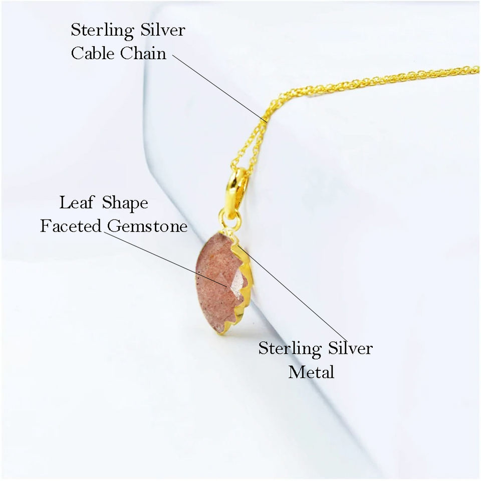 925 Sterling Silver Blue Opal Gemstone Necklace Leaf Shape Pendant Gold Vermeil Cable Chain Carved Designer Diamond Pearl
