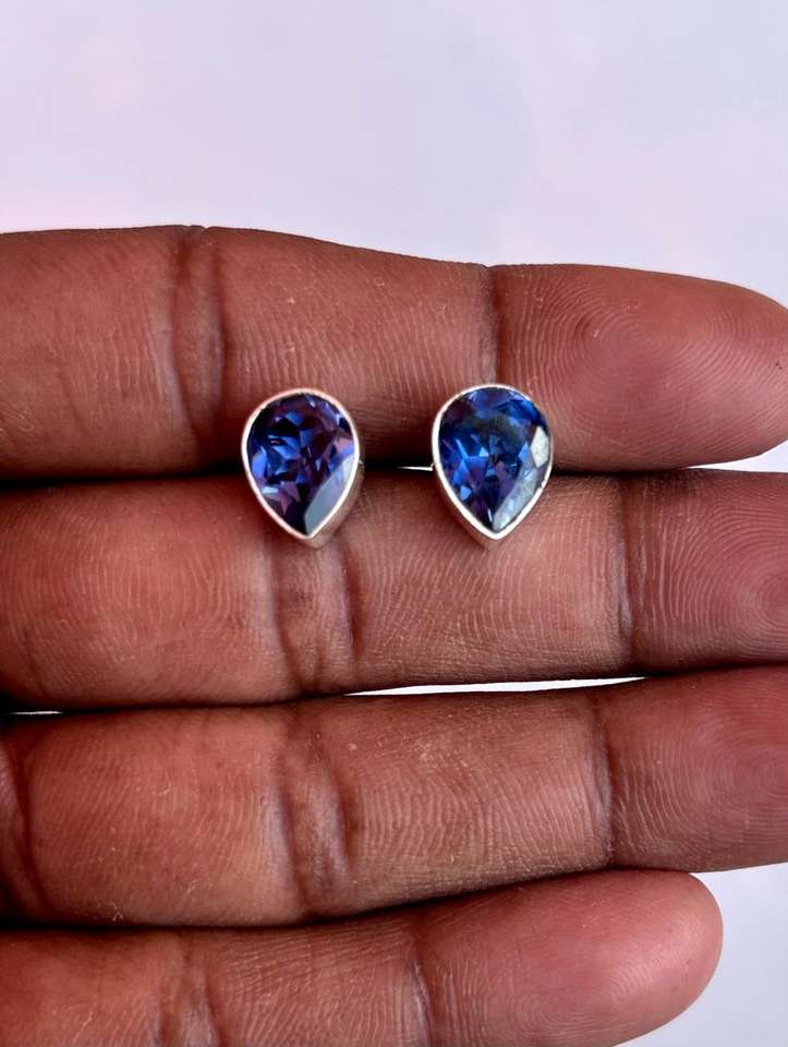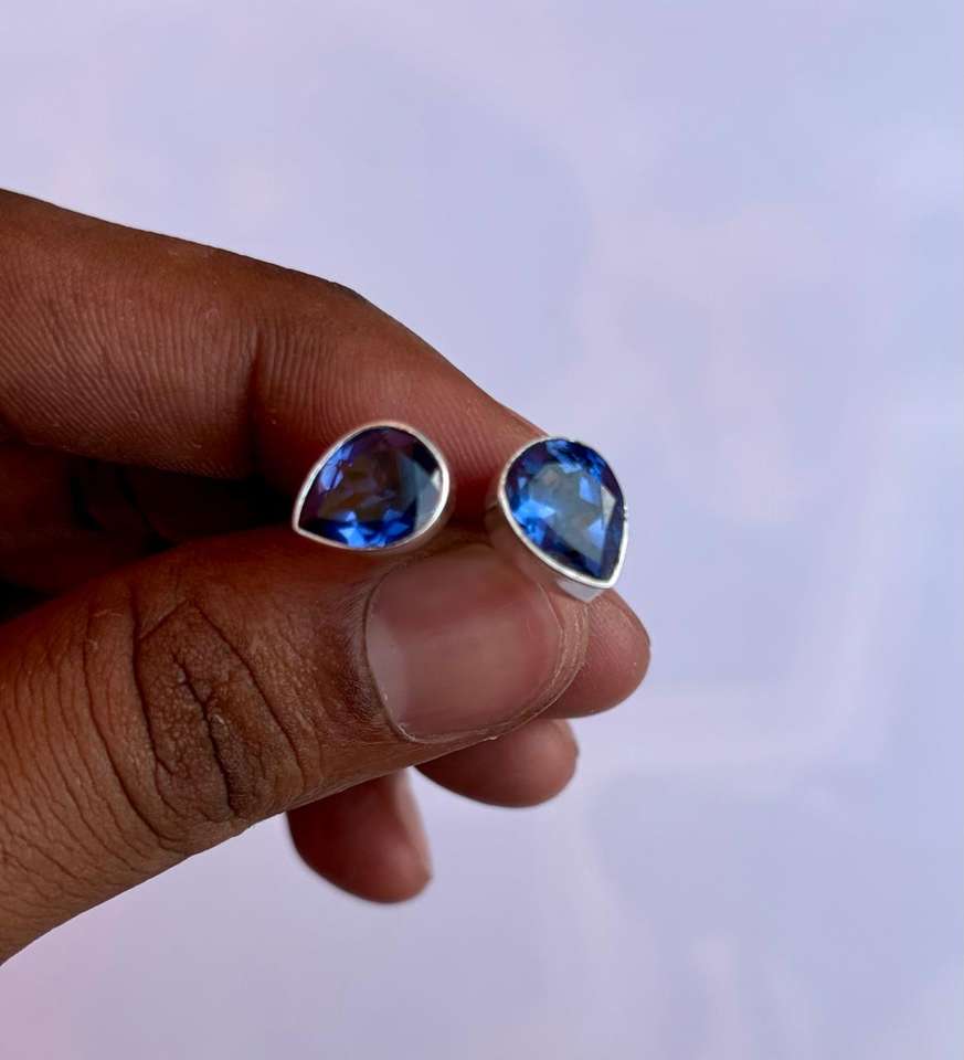 925 Sterling Silver Blue Sapphire Handmade Earring Beautiful Women Earring Beautiful Stud Earring .