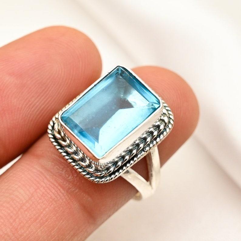 925 Sterling Silver Blue Topaz Gemstone Boho Style Handmade Wedding Ring for Women Gift Mom