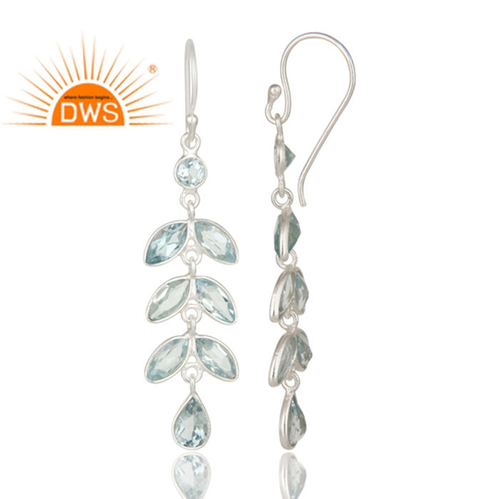 925 Sterling Silver Blue Topaz Gemstone Bezel-Set Leaf Dangle Earring Jewelry For Women Gift For Her Vintage Collection