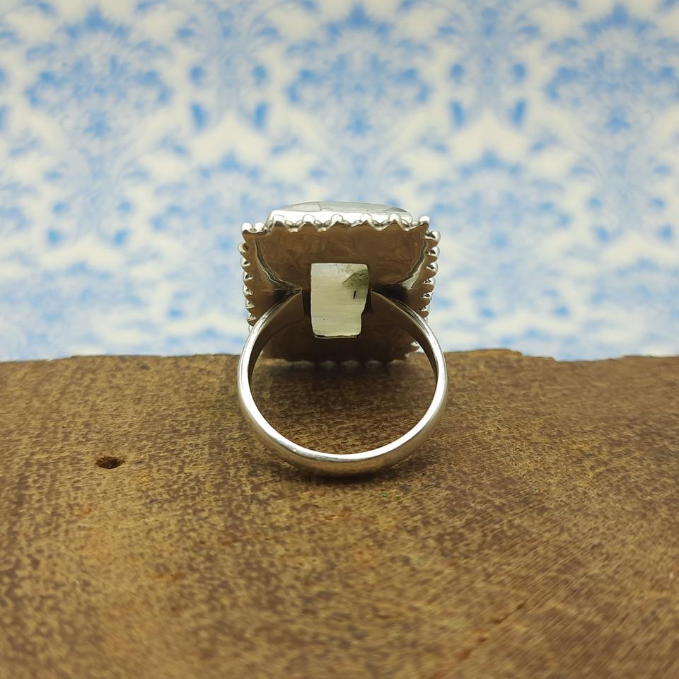 925 Sterling Silver Bohemian Artisan Crafted Designer Ring Chunky Rainbow Moonstone with Diamond Main Stone Weddings Engagements