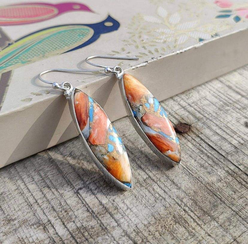925 Sterling Silver Bohemian Dangle Drop Earrings Natural Spiny Turquoise Gemstone Gold Plated Statement Jewelry
