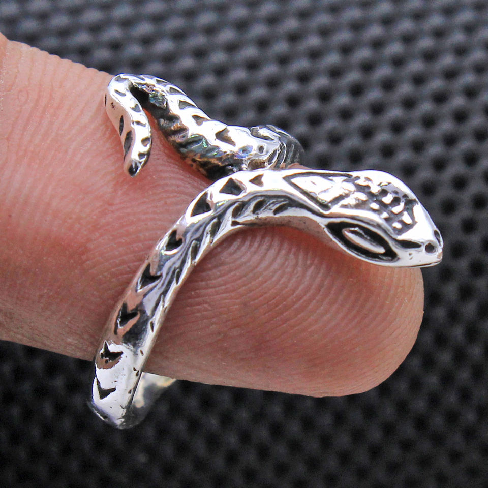 925 Sterling Silver Bohemian Style Snake Design Cocktail Ring with Rhodium Plating