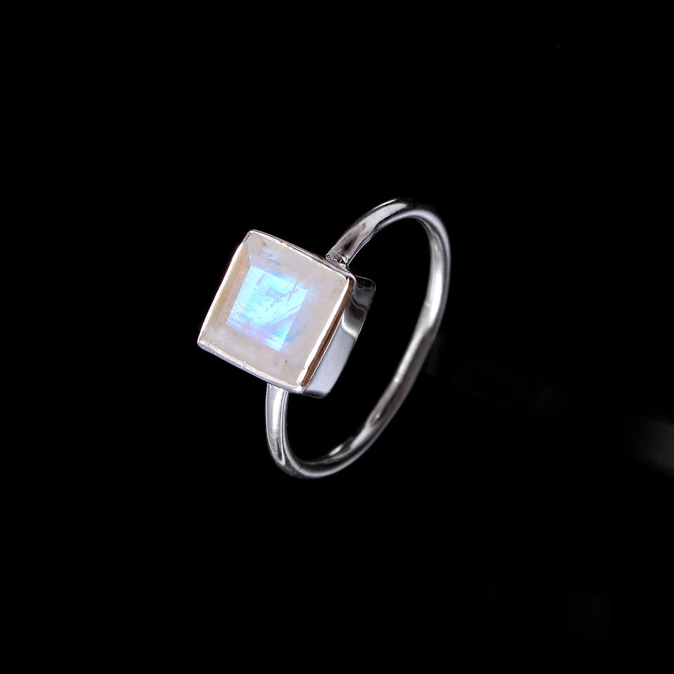 925 Sterling Silver Boho Eternity Ring Natural Rainbow Moonstone Square Faceted Gemstone Birthday Bezel Setting Gifts for Her