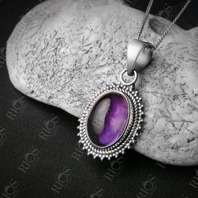 925 Sterling Silver Boho Necklace Pendant with Natural Amethyst Gemstone Rhodium Plated Gold in Elegant Purple Stone Gift Boxed