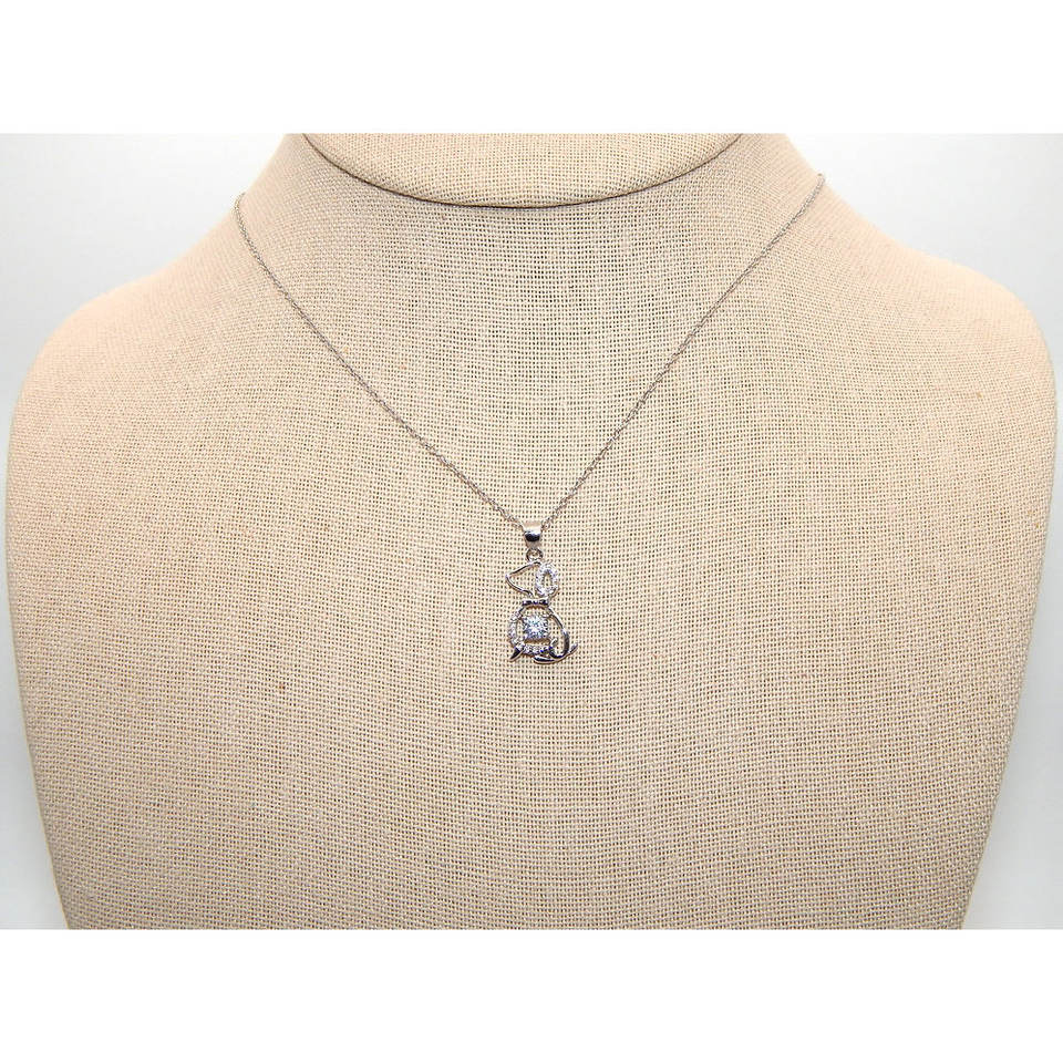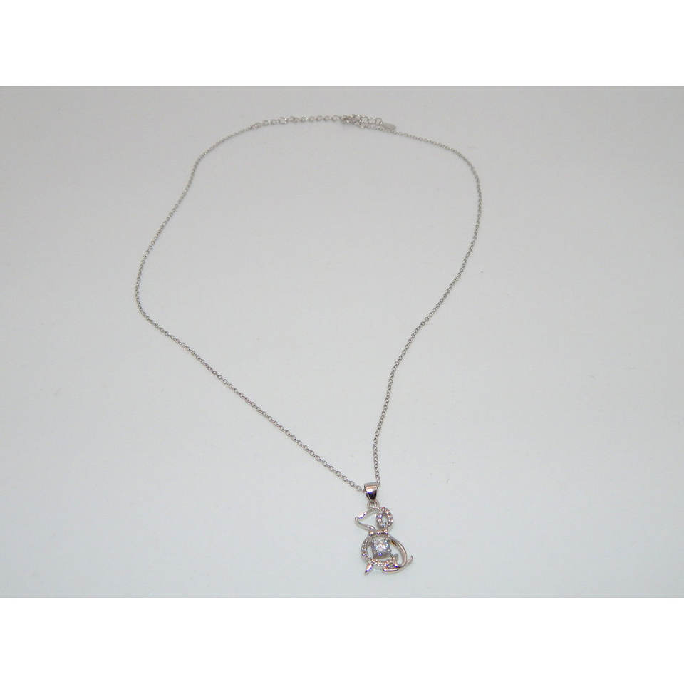 .925 Sterling Silver Box Chain Necklace and CZ Dog Pendant