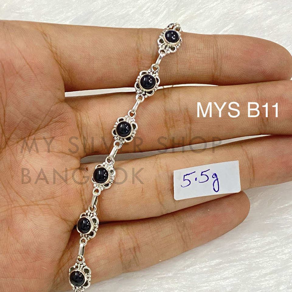 925 Sterling Silver Bracelet with Natural Semiprecious Black Onyx Gemstone Round Brilliant Cut Perfect Birthday Gift for Her
