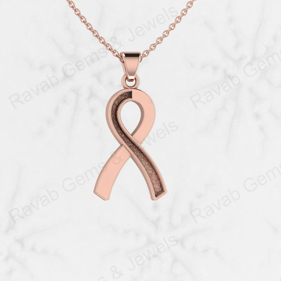 925 Sterling Silver Breast Cancer Ribbon Charm Semi Mount Blank Setting Pendant Good for Ashes & Resin Work Breastmilk Keepsake