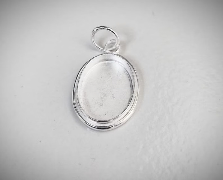 925 Sterling Silver Breastmilk Keepsake Resin Ashes Pendant Plain Cup Setting Oval Bezel Sizes 4x4mm Jewelry Findings Components