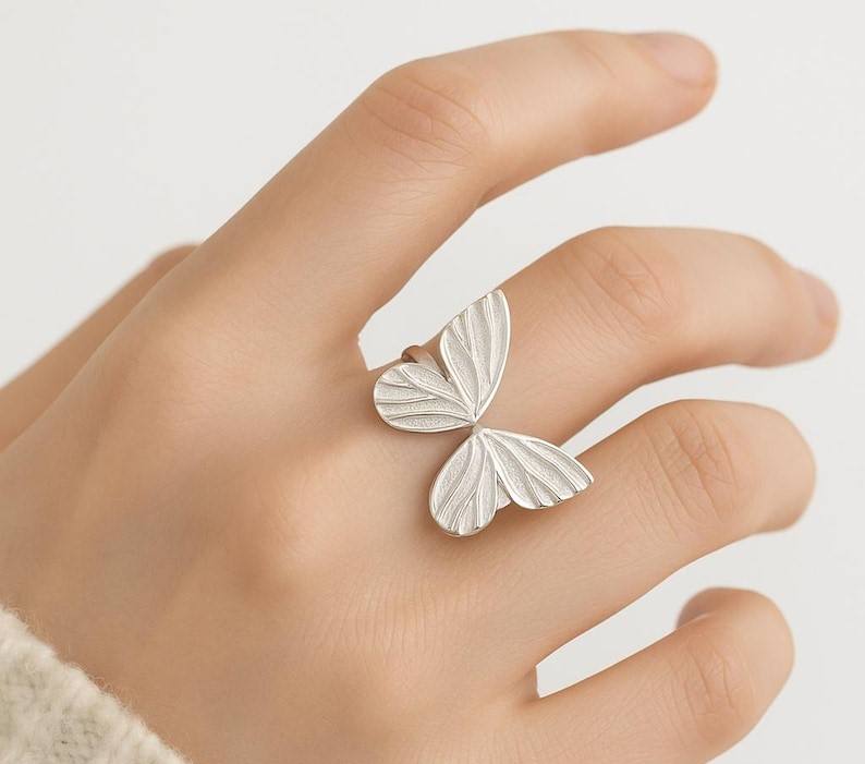 925 Sterling Silver Butterfly Ring Artistic Wing Design Lightweight Jewelry Elegant Craftsmanship Perfect Gift Choice