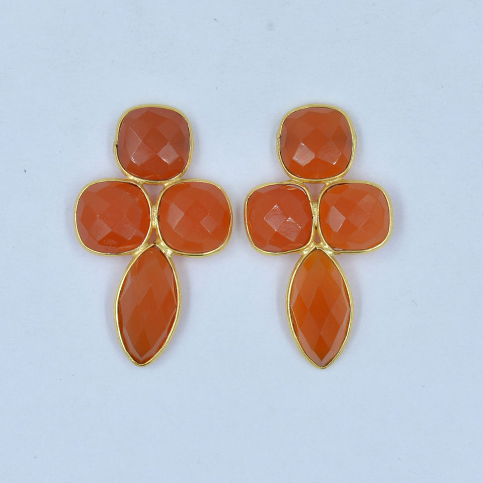 925 Sterling Silver Carnelian Marquise With Cushion Stud Earrings High Quality Solid Gold Plated Trendy Jewelry for Parties Gift