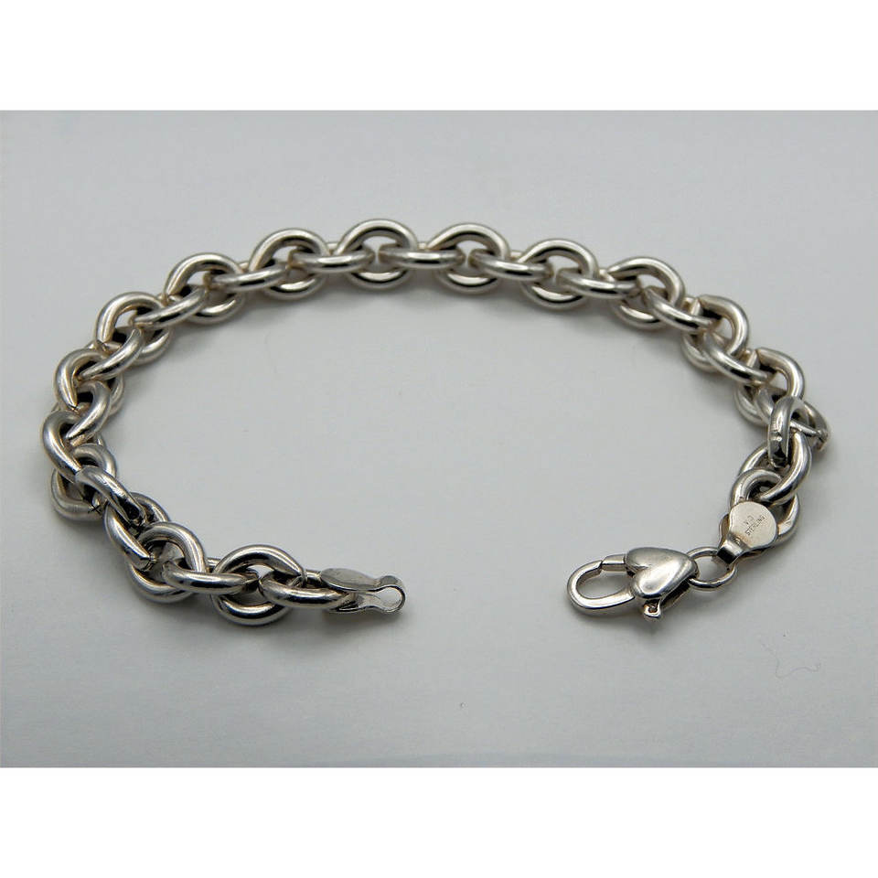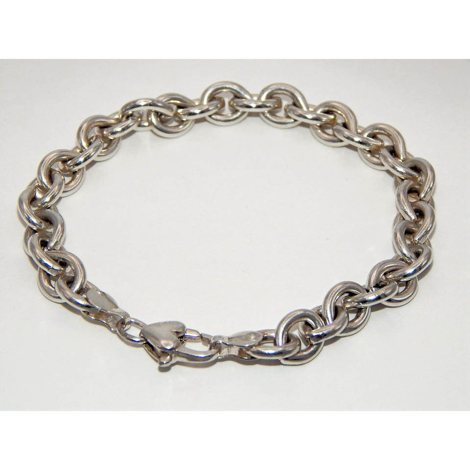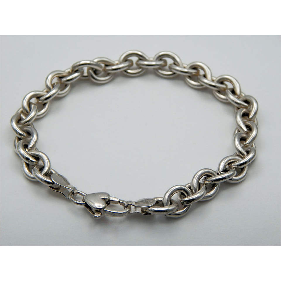 925 Sterling Silver Chain Link and Heart Bracelet Fashionable Chain & Link Bracelets