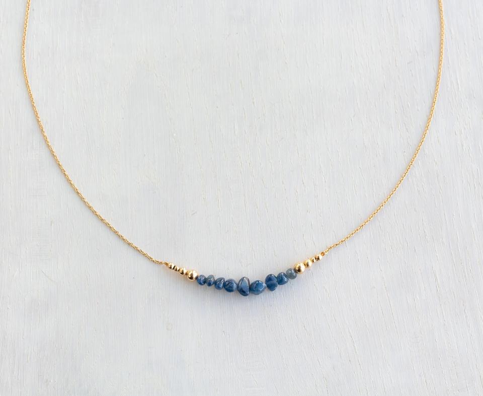 925 Sterling Silver Christian Wedding Statement Necklace Gold Polish Genuine Sapphire Bar Natural Blue Raw Sapphire Fine Jewelry