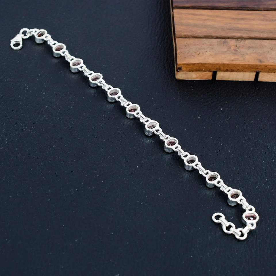 925 Sterling Silver Classic Adjustable Bracelet with Garnet Gemstone Fine Chain & Link Bracelet for Party or Anniversary Gifts